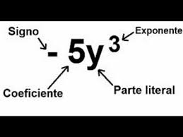 Vimos que son Términos Algebraicos; que es una mínima expresión del álgebra, como esta compuesto: por un signo ya sea + o -, por un coeficiente o parte numérica, por una potencia